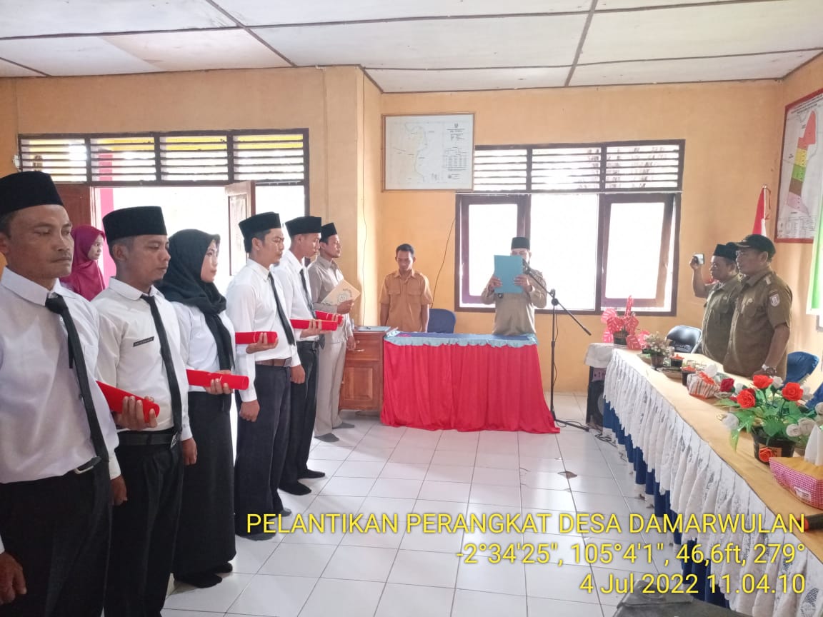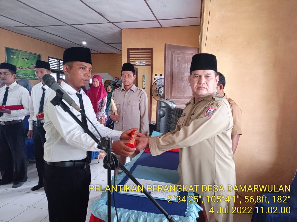 Kepala Desa Damarwulan resmi melantik 5 perangkat desa yang baru untuk mengisi kekosongan perangakat desa, setelah melalui proses penjaringan akhirnya keluarlah rekomendasi dari Camat Air Salek Nomor 140/315/PMD.AS/2022 Tertanggal 21 Juni 2022, Sebagai dasar Pengangkatan dan pembuatan SK perangkat Desa dengan Nomor : 17/KPTS/DW/2022 Tertanggal 4 Juli 2022.